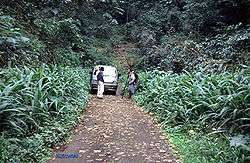 Volcanism has created fertile black and brown soils.[34] The Western High Plateau was once heavily forested. However, repeated cutting and burning by humans has forced the forest back to areas along the waterways and has allowed grasslands to expand into the area.[35] Sudan savanna forms the dominant vegetation. This consists of grassfields—leading to the name Bamenda grassfields around the city of Bamenda—and short shrubs and trees that shed their foliage during the dry season as a defence against brush fires and dry weather. Raffia palms grow in the valleys and depressions.[36]