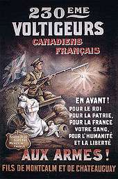 French-Canadian recruitment poster emphasizing duty to France with French national heroes