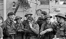 Canadian troops resting on board a destroyer after the Combined Operations daylight raid on Dieppe during World War II.