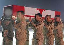 - ↑ "Canadian Forces' Casualty Statistics (Afghanistan)". Canada News Center. 12 January 2011. Retrieved 14 February 2011.