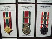 - General Campaign Star: recognising combat service in various campaigns, a unique bar for each campaign