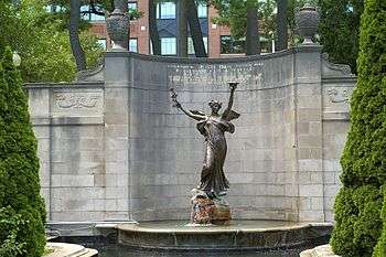 The water from the springs has been channeled into streams and fountains. One surrounds The Spirit of Life, a statue by Daniel Chester French memorializing Spencer Trask, a great benefactor of the Saratoga area who founded the Yaddo writers' colony. It sits on the south side of the large lagoon in the park. Two vases, Night and Day, by Danish sculptor Bertel Thorvaldsen, are positioned on the lawn in front of the casino.[3]