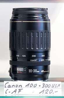 - ↑ Canon Inc. "EF100-300mm f/4.5-5.6 USM". Canon Camera Museum. Retrieved 2016-05-18.