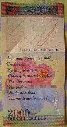 On 22 December 2014, the Banco de Cabo Verde introduced a new series of banknotes that honor Cape Verdean figures in the fields of literature, music, and politics. It consists of denominations of 200, 1,000 and 2,000 escudos, with the former now printed on polymer.[20]