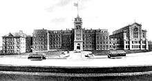 As the only building to survive the fire of 1919 on campus, the Fine Arts building was part of the original structure of the old St. Mary's Industrial School. It was constructed during opening of St. Mary's.[11] In this building, Babe Ruth spent time working on the various trade and industrial requirements where he especially excelled at the trade of tailoring for the St. Mary's curriculum. Before closing, this building housed Cardinal Gibbons' fine arts classrooms for art and music, and student activities center, and the Justin Fisher Memorial weightroom in the bottom level.