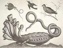 In April 1735, Linnaeus and Sohlberg set out for the Netherlands, with Linnaeus to take a doctoral degree in medicine at the University of Harderwijk.[54] On the way, they stopped in Hamburg, where they met the mayor, who proudly showed them a wonder of nature which he possessed: the taxidermied remains of a seven-headed hydra. Linnaeus quickly discovered it was a fake: jaws and clawed feet from weasels and skins from snakes had been glued together. The provenance of the hydra suggested to Linnaeus it had been manufactured by monks to represent the Beast of Revelation. As much as this may have upset the mayor, Linnaeus made his observations public and the mayor's dreams of selling the hydra for an enormous sum were ruined. Fearing his wrath, Linnaeus and Sohlberg had to leave Hamburg quickly.[55][56]