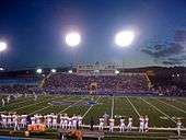 - Football - The Cavemen football team has a total of eight state championships, but their most recent one was in 1962. The team plays at Ralph Bowyer Cavemen Stadium (which is named after a former Cavemen football player and later coach in 1962) on campus with a capacity of nearly 7000 fans. The team wears silver helmets with a single blue stripe and a blue wishbone "C"; the jerseys and pants are both solid blue. The away jerseys and pants are white. Throughout the 1980s into 2005, in addition to the traditional blue home uniforms with silver helmets, the team wore silver visiting jerseys and pants. During their 2010 season, the Cavemen went 7-3 in the regular season, and won the District 4 AAAAA title by defeating the Clovis Wildcats 14-13. The Cavemen then defeated the West Mesa High School Mustangs 35-19 in their first home playoff game since 2002. However, the Cavemen fell next week to the Manzano High School Monarchs 39-29. This season marked a major turnaround for head coach Ron Arrington. In 2011, the Cavemen finished the regular season 8-2, as well as defeating the Artesia Bulldogs and the Mayfield Trojans, the latter of whom Carlsbad had not defeated since 1992.