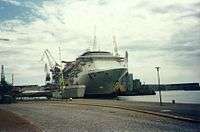Carnival Miracle is a Spirit-class cruise ship. Like the majority of her sisters, she is owned by Carnival Corporation & plc and operated by Carnival Cruise Line. Built by Kværner Masa-Yards at its Helsinki New Shipyard in Helsinki, Finland, she was floated out on June 5, 2003, and christened by United States Army soldier Jessica Lynch in Jacksonville, Florida, on February 7, 2004.[2][3][4] Soon after the conclusion of the christening ceremony, she departed on her maiden voyage, a three-day cruise to the Bahamas.[2]