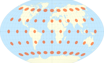 - ↑ Examples of Tissot's indicatrix. Some beautiful illustrations of the Tissot Indicatrix applied to a variety of projections other than normal cylindrical.