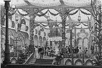 Built by Georg Carstensen, founder of Tivoli Gardens, Casino was originally envisioned as a "winter tivoli" with bazar, promenade concerts and soirées. Carstensen financed the project through the sale of shares. In November 1845, he had raised 200,000 Danish rigsdaler.[1] The building was designed by H. C. Stilling who had also worked for Carstensen during the establishment of Tivoli Gardens. The entertainment venue opened on 22 February 1847.[2]