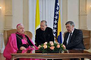 - ↑ "Apostolic Nunciature Bosnia and Herzegovina". gcatholic.org. GCatholic. Retrieved 18 May 2013.