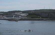 The Cattewater is that stretch of water where the mouth of the river Plym merges with Plymouth Sound, just to the east of Sutton Pool. It is around this Pool that the manor of Sutton started, which grew to form the present day city. On the northern shore of this confluence of waters there was a rock outcrop, which it was claimed, had the appearance of a cat.[1] This gave its name to this stretch of water and eventually the name of Cattedown to the adjoining wharves and commercial area. Apart from an occasional small oil tanker the area is now used mostly by fishing trawlers, yachts, and smaller pleasure craft. There is a water taxi across it from the Mayflower Steps on Plymouth Barbican to Mount Batten and also Oreston both on the southern bank.