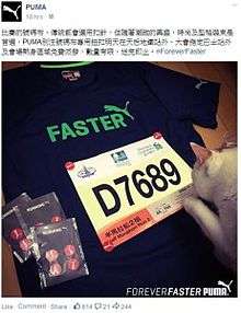 To publicise its involvement in the 2015 Hong Kong marathon, Puma posted an image of a facsimile runner's identification tag bearing the number "D7689" onto its Facebook page. One supporter of the Loving Hong Kong movement objected to the number, writing to the global CEO of the manufacturer saying that it was disrespectful to chief executive CY Leung and threatened to initiate a mass boycott of the company's sportswear.[66][67] The complainant explained that "689 is the code of the current CE of HKSAR well understood by HK people. D7 has the similar phonics in Chinese as the 'F***' word".[67] The company declared its political neutrality, and withdrew the offending post.[66] Lampooning the complaint, members of the public scoured the city and found many examples of innocent occurrences of the irreverent number.[68] MTR staff were warned after one such example found, of a carriage bearing the "D689" marking, posted to their unofficial MTR Service Update page on Facebook.[68][69]