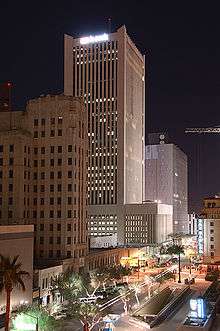 The City of Phoenix defines Downtown as the area between 7th Street and 7th Avenue, from McDowell Road on the north to Buckeye Road on the south.[1] However, the majority of downtown development is concentrated in the smaller area surrounding the intersection of Washington St. and Central Ave (which is the point of origin of Phoenix street addresses and numbering). Downtown Phoenix is one of a few major business districts in the city; others include Midtown Phoenix to the north, and the Biltmore District four miles northeast of downtown.