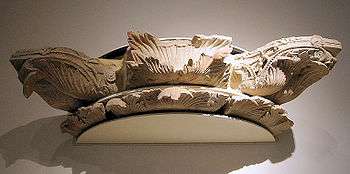 Details reveal elaborate carving, and the presence of naked amorini and vines in the acanthus foliage.