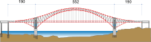 | Height | 142 m (466 ft) (middle supports to arch top) |