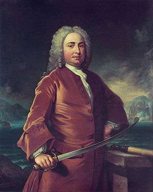 His opportunity arrived in 1739, when, during the War of Jenkins' Ear, he served under Vernon in the attack on Portobello, in the isthmus of Darien. He led the squadron into Boca Chica, placing his vessel, the Hampton Court, alongside the strongest part of the fortifications. When the fortress surrendered, the Spanish governor presented his sword in token of submission. Brown very properly declined to receive it, saying he was but 'second in command,' and took the governor in his boat to Admiral Vernon. But the Spaniard was obstinate, declaring that but for the insupportable fire of the commodore he never would have yielded. Thereupon Vernon, very handsomely turning to Brown, presented to him the sword, which is still in the possession of his descendants. In 1741 Brown was appointed to the office of commissioner of the navy at Chatham, a situation which he held with unblemished reputation until his death, on 23 March 1753. His daughter, Lucy, became the wife of Admiral William Parry, commander-in-chief of the Leeward Islands; and her daughter and namesake married Captain William Locker, under whom Lord Nelson served in his early days, and who subsequently became lieutenant-governor of Greenwich Hospital. There was a portrait of Brown in the Painted Hall at Greenwich, which subsequently passed in the hands of the successor institution, the National Maritime Museum.