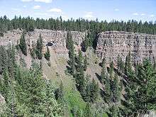 Multiple flood basalt flows and trees in Chasm Provincial Park