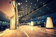 Visitor's lobby overlooking Departure Hall, inside view of the new terminal building