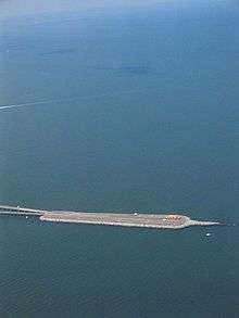 One of the artificial islands making up part of the bridge–tunnel complex, seen from the air