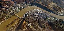 Aerial view of Chester (top left) and the adjacent East Liverpool, Ohio