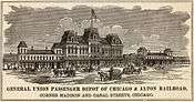 On April 7, 1874 five railroads agreed to build and share a union station just north of the original Pittsburgh, Fort Wayne, and Chicago Railroad station site at Van Buren Street. These railroads were: