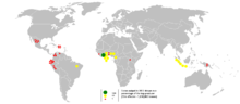 In 2002, Côte d'Ivoire had 12,000 children with no relatives nearby, which suggested they were trafficked,[2] likely from neighboring Mali, Burkina Faso and Togo.[27] According to a 2009 snowball sampling study, the majority of those with childhood cocoa labor experience were trafficked (75% from Burkina Faso and 63% from Mali).[28] The majority of those who were trafficked had no interaction with police, and only 0.5% had any contact from institutions that provided social services.[29] Western African nations of Cameroon,[30] Côte d'Ivoire,[31] Ghana[32] and Mali[33] are on the 2009 US State Department's Tier 2 Watch List for human trafficking in part due to the trafficking of children in cocoa production. Burkina Faso[34] and Togo[35] are rated at Tier 2 in part due to trafficking for cocoa production.