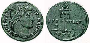 - ↑ Schapiro's main thrust. Haney's chapter gives a completely different interpretation of the image. She and Hilmo's chapter 2 discuss the main literature. In particular Hilmo asserts that Fritz Saxl had misread a passage in Eusebius, seeing "adoratae" (adored) for the rare "adortae" (attacked), in reference to the beasts - Hilmo, 40 and 45.