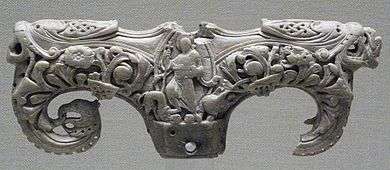- ↑ Carolingian with Insular influence, as well as similarities with works from Trier and northern France, according to Lasko, 13; Northumbrian according to Hilmo, 42, following John Beckwith's Ivory Carving in Early Medieval England (1972), of which view Lasko was aware from other sources - see his note 32 on p. 260. See also Schapiro, 128.