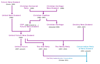 It changed its name to Future New Zealand in 1998 and contested the 1999 election. It formed a coalition with the United Party as United Future New Zealand in 2000 and contested the 2002 election. The coalition became a full merger the following year.