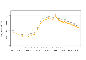 Before 1966, membership totals in CDU organisation were only estimated. The numbers after 1966 are based on the total from 31 December of the previous year.