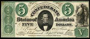 6. "Legendary Coins and Currency: Confederacy, 5 dollars, 1862". National Museum of American History. Retrieved 2011-08-12.