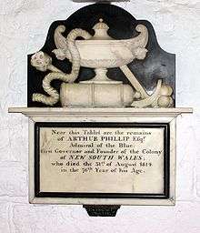 - ↑ "Arthur Phillip 1738-1814 - First Governor of New South Wales". St Nicholas Bathampton. Retrieved 17 September 2013.