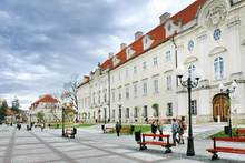 The Schaffgotsch family ruling vast lands around Karkonosze settled in Cieplice in 1675. Their previous seat was Chojnik castle, burned down due to a stroke of lightening. Their Schaffgotsch Palace's greatest ornament are the two semi-circulary finished porticos with richly ornamented cartouches carrying the family crestofthe owners. The interiors boasts early classicistic fittings. The palace currently houses a branch of the Wrocław University of Technology.