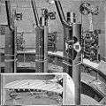 Cinéorama consisted of 10 synchronized 70 mm movie projectors, projecting onto 10 9x9 metre screens arranged in a full 360° circle around the viewing platform. The platform was a large balloon basket, capable of holding 200 viewers, with rigging, ballast, and the lower part of a huge gas bag.