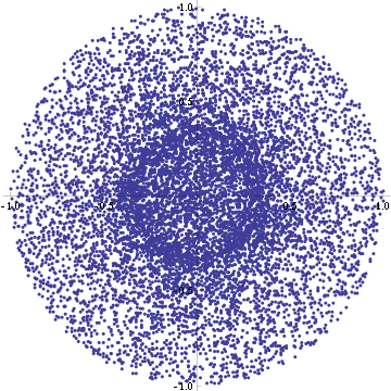 where is the Bessel function of order zero. There is no known general analytic solution for the above integral, and it is difficult to evaluate due to the large number of oscillations in the integrand. A 10,000 point Monte Carlo simulation of the distribution of the mean for N=3 is shown in the figure.