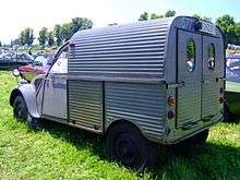 In 1951 the 2CV received an ignition lock and a lockable driver's door. Production reached 100 cars a week.[42] By the end of 1951 production totalled 16,288.[43] Citroën introduced the 2CV Fourgonnette van. The "Weekend" version of the van had collapsible, removable rear seating and rear side windows, enabling a tradesman to use it as a family vehicle on the weekend as well as for business in the week.