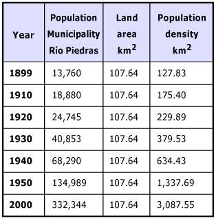 San Juan is the largest city in Puerto Rico by population.[52] From 1899 to 1950 the municipality of San Juan excluded the township of Río Piedras. For this reason, population data and land area for the period make reference only to the Antiguo San Juan and Santurce barrios, or subdivisions, of San Juan. The old municipality of Río Piedras constituted the third most populated city of Puerto Rico at the time of its annexation in 1951. Its strategic location south of the capital served as a junction for all the principal ways of transportation of the island and as a geographical entry to San Juan, which are factors that prompted Río Piedras's dramatic urban development in the 20th century.