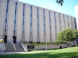 Crawford Hall is home to the Department of Neuroscience at the University of Pittsburgh. Designed in the international style,[5] it is last of the three main buildings to be constructed. Crawford Hall's construction was begun in 1966 and the $3.8 million ($27.8 million today) building was completed and dedicated in 1969.[10] It was originally the home of the Department of Chemistry, the Department of Psychology, and the Department of Biophysics and Microbiology (now part of the Department of Biological Sciences). Crawford Hall is named after Stanton C. Crawford, former Dean and 13th Chancellor of the University of Pittsburgh, whose scientific specialty was Biology.