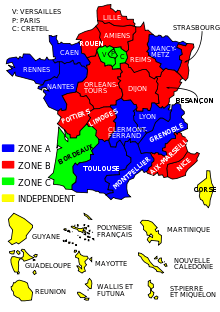 | B | Aix-Marseille, Amiens, Besançon, Dijon, Lille, Limoges, Nice, Orléans-Tours, Poitiers, Reims, Rouen, Strasbourg |