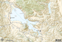 Clear Lake is the largest natural freshwater lake in California with 68 square miles of surface area. Lakes have existed at the site of Clear Lake for at least 2,500,000 years, possibly making it the oldest lake in North America.[2] It is located in Lake County, north of Napa County and San Francisco.