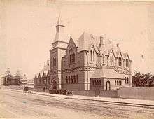 Following the 1866 Public Schools Act, the pre-fabricated galvanised iron buildings at Cleveland Street were demolished to be replaced by substantial buildings. These took 14 months to construct and have been described as Gothic Revival in architecture.[7]