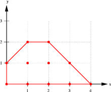 In mathematics, the convex hull or convex envelope of a set X of points in the Euclidean plane or in a Euclidean space (or, more generally, in an affine space over the reals) is the smallest convex set that contains X. For instance, when X is a bounded subset of the plane, the convex hull may be visualized as the shape enclosed by a rubber band stretched around X.[1]