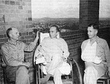 In accordance with MacArthur's orders, Eichelberger relieved the 32nd Infantry Division's commander, Major General Edwin F. Harding, replacing him with the division's artillery commander, Brigadier General Albert W. Waldron, on 2 December 1942.[7] In an attack on 5 December, Waldron was shot in the shoulder by a Japanese sniper,[8] and Byers succeeded him as commander of the troops in the field.[9] Byers in turn was wounded on 16 December. He became the third American general to be shot at Buna, Brigadier General Hanford MacNider having been shot earlier in the fighting, none of whom was more than 75 metres from Japanese lines at the time.[10] General Eichelberger assumed command, as he was now the only American general officer present. Waldron and Byers were awarded the Distinguished Service Cross.[11] Byers' citation read: