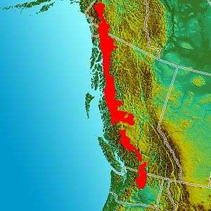 The Coast Range Arc was a large volcanic arc system, extending from northern Washington through British Columbia and the Alaska Panhandle to southwestern Yukon.[1] The Coast Range Arc lies along the western margin of the North American Plate in the Pacific Northwest of western North America. Although taking its name from the Coast Mountains, this term is a geologic grouping rather than a geographic one, and the Coast Range Arc extended south into the High Cascades of the Cascade Range, past the Fraser River which is the northward limit of the Cascade Range proper.