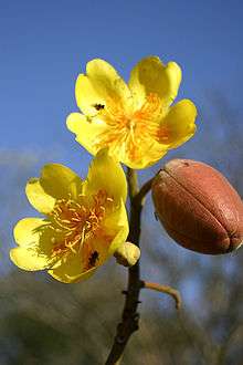 The Cochlospermaceae are a family of two genera and 20-25 species of trees and shrubs, included in the Bixaceae in the APG III system. The older APG II system treated this family as an optional segregate of Bixaceae.[1] They occur widely throughout the tropical regions of the world, but are curiously absent from Malaysia. Most species in this family are mesophytic or xerophytic, growing primarily in drier climates.