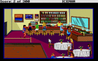 Technologically, ICEMAN is more advanced than Sierra's earlier games. Westland can move in 8 directions instead of 4, the character's sprite goes though several changes of appearance depending on his clothing, and character animations are generally smooth (e.g. the movements while playing dice.)