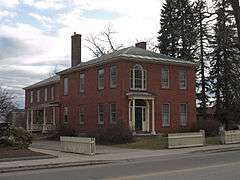 The Colony House is a historic house at 104 West Street in Keene, New Hampshire. The oldest portion of the house, its front block, was built in 1819 by Timothy Hall, a local merchant. The house was purchased in 1863 by Horatio Colony, in whose family's hands it was for a century. It is a brick two story structure with a hip roof. The exterior has modest Federal styling, predominantly in its main entry, with half-length sidelight windows topped by a half-oval fanlight and sheltered by a modest portico. The interior of the building has well-preserved woodwork that took its inspiration from the publications of Asher Benjamin. A c. 1900 addition to the rear emulates the style and building materials of the original block.[2]