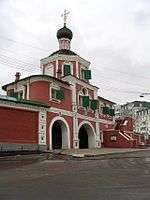 The Conception Convent or Zachatyevsky Monastery (Russian: Зачатьевский монастырь) is a Russian Orthodox stauropegic convent on the northern bank of the Moskva River in Khamovniki District of Moscow. The convent was closed by the Bolsheviks in 1918 and did not reopen until 1995. As most of its buildings were pulled down by the Soviets, an extensive building campaign is underway.