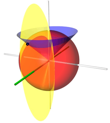 Conical coordinates are a three-dimensional orthogonal coordinate system consisting of concentric spheres (described by their radius r) and by two families of perpendicular cones, aligned along the z- and x-axes, respectively.